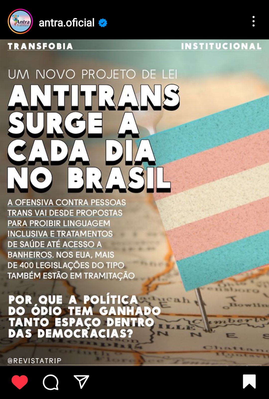 Segundo a notícia publicada no Jornal A Folha de São Paulo em abril de 2023[1], são 21 projetos de lei na câmara dos deputados em diversos estados do país que tem como ímpeto vetar o uso da linguagem neutra.  A informação postada nas redes sociais da ANTRA[2], mostra que foram mais de 69 projetos de lei, só no ano de 2023, com pautas anti-trans, incluindo os contrários ao uso da linguagem neutra nos materiais didáticos e documentos escolares.