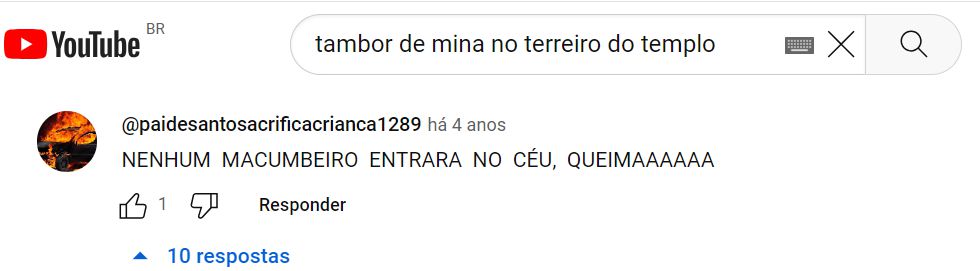 No vídeo intitulado “Tambor de Mineração no Território do Templo” (código 03 da tabela), aparece outro comentário: