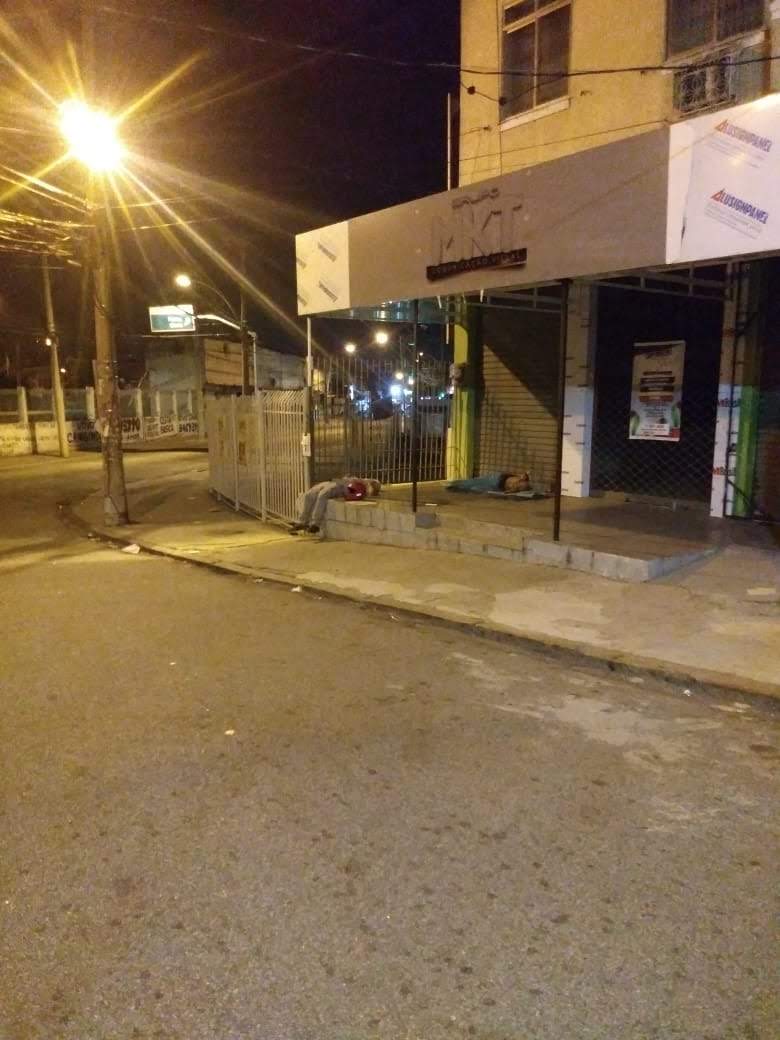 A segunda foto (imagem 2) que Ruth trouxe, foi da rua onde mora em Brás de Pina, mas agora de outra perspectiva e horário. Ela tirou à 1h da manhã, quando chegava do trabalho em uma empresa de tecnologia. Comecei a fazer perguntas sobre a diferença de estar na cidade de dia e de noite, atrelando à questão da segurança, que encerrou a análise da foto anterior. Até que fui interrompida por Ruth, que disse que não era sobre isso que ela queria falar, mas sobre o senhor que dormia na rua.